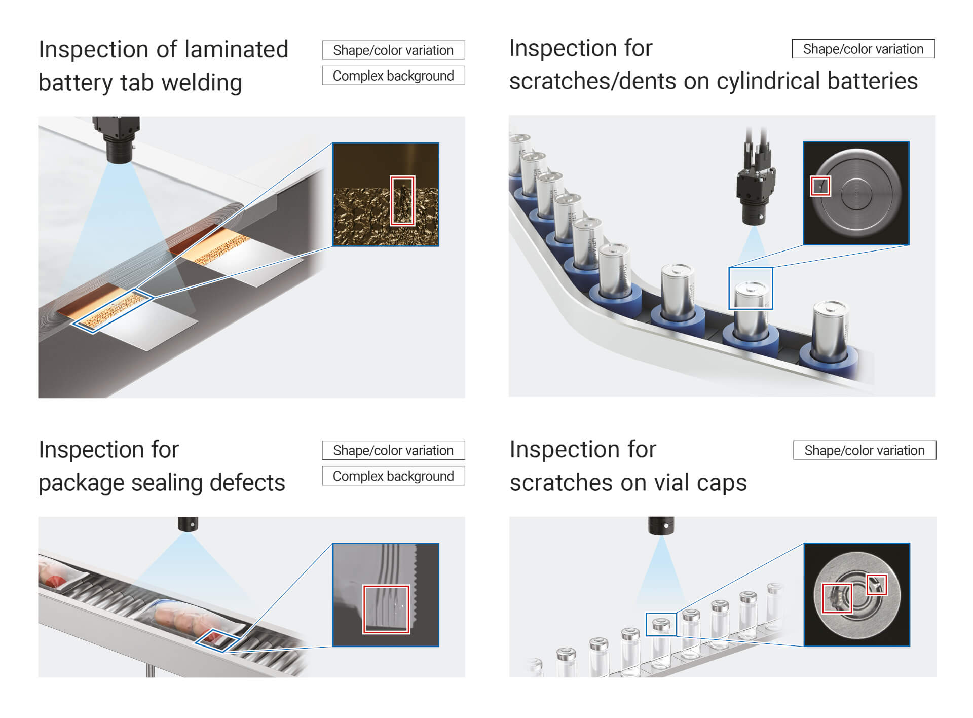 - Mängel- und Oberflächeninspektion von Antriebsbatterien von Elektrofahrzeugen, bei denen die gesamte Batterieoberfläche einer Inspektion unterzogen werden muss